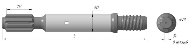 Shanks compatible with HL1500-80/1560T-80/HL1060T-80/HF1560 hydraulic rock drills, Shoulder drive