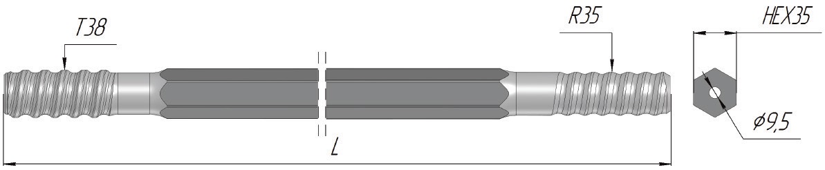 Hexagonal drill rods for hydraulic rock drills Т38-R35 thread