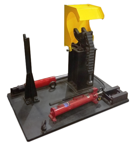 Резьбовые соединения поводкового патрона и верхнего переводника могут сильно затянуться в процессе бурения. Удобнее развинчивать погружной пневмоударник сразу на буровом станке, но если резьбовые соединения не развинчиваются или их заклинило, то наилучшим решением является стенд для разборки погружных пневмоударников (далее по тексту «ППУ»). Переносной, но мощный стол для разборки ППУ свободно размещается в мастерской или в контейнере и служит для раскручивания резьбовых соединений ППУ размером от 4” до 8”.